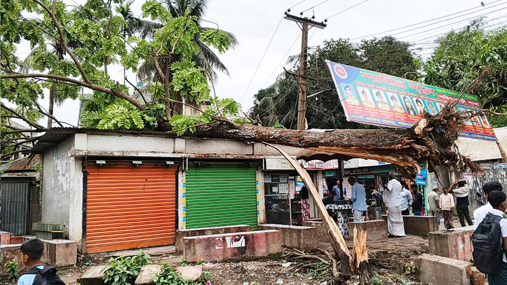 গতকাল রোববার (২৬ এপ্রিল) রাত ১১টার দিকে হঠাৎ আকাশ কালো হয়ে প্রবল দমকা হাওয়া শুরু হয়। কয়েক মিনিটের মধ্যেই তা তীব্র কালবৈশাখীতে রূপ নেয়। ঝড়ের তীব্রতায় টিনের ঘরের চাল উড়ে যায়, ছোট-বড় অসংখ্য গাছ উপড়ে পড়ে বাড়িঘর ও সড়কের ওপর। এতে দীর্ঘ সময় যান চলাচল ব্যাহত হয়।