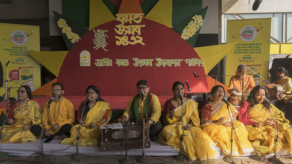 সম্মেলক সংগীত পরিবেশন করে সত্যেন সেন শিল্পীগোষ্ঠী এবং বহ্নিশিখা। কবি আসাদ চৌধুরীর ‘ফাল্গুন এলো’ কবিতাটি আবৃত্তি করেন নায়লা তারান্নুম।