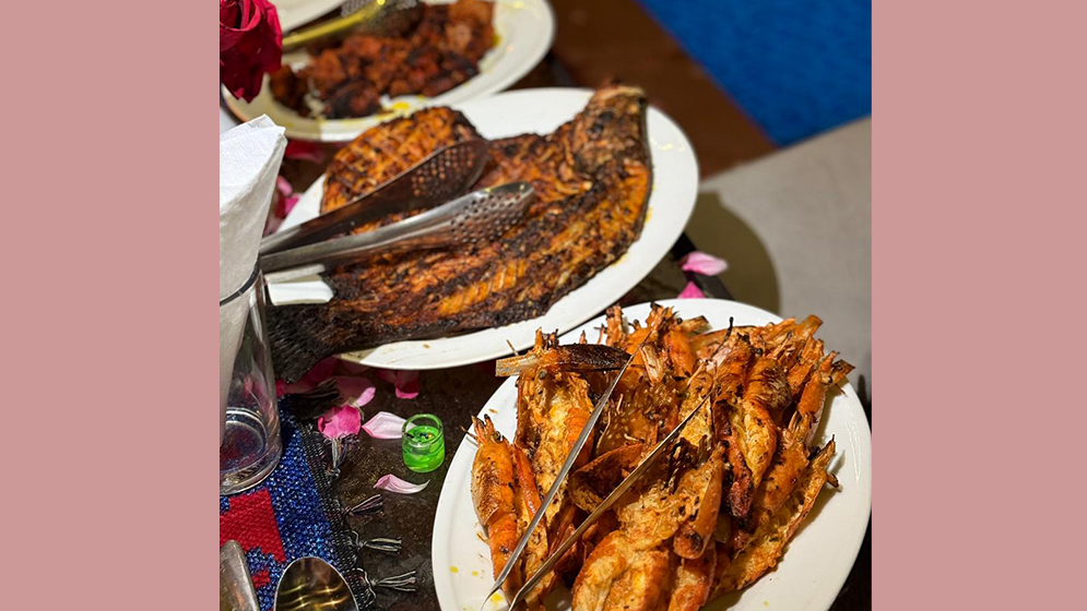 কুমড়ো ফুলের ফ্রাই, কলার মোচা দিয়ে তৈরি বিশেষ চপ, লইট্টা মাছের বাহারি সমাহার, ডাব-চিংড়ি, নারিকেলের পুডিং কিংবা পাহাড়ি মোরগের অসাধারণ সব রেসিপি এখানকার নিয়মিত আয়োজনগুলোর মধ্যে অন্যতম। সদ্য ধরা টুনা মাছ, লবস্টার, চিংড়ি, পমফ্রেট, অক্টোপি এবং স্কুইডসহ সামুদ্রিক খাবারও বাছাই করা যেতে পারে। চিনিগুঁড়া চালের ভাত ও ঘি মিশিয়ে তৈরি ডাল এখানকার খাবারের অন্যতম আকর্ষণ।