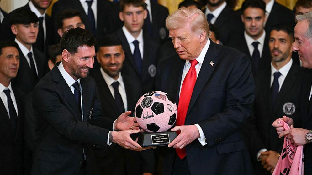 মার্কিন প্রেসিডেন্ট ডোনাল্ড ট্রাম্প বৃহস্পতিবার হোয়াইট হাউসের ওভাল অফিসে সর্বশেষ এমএলএস চ্যাম্পিয়ন ইন্টার মায়ামি দলকে সংবর্ধনা দিয়েছেন। এই অনুষ্ঠানে মধ্যমণি হয়ে ছিলেন আর্জেন্টাইন কিংবদন্তি লিওনেল মেসি।