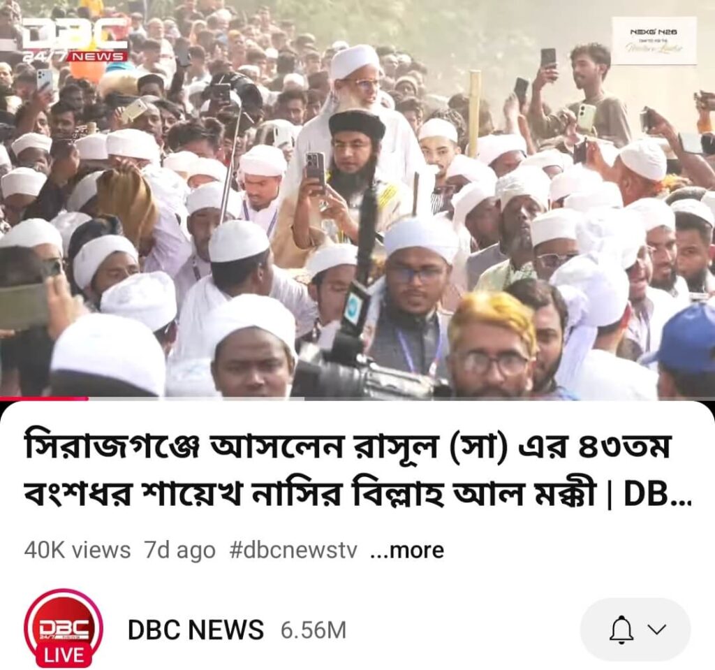 এছাড়াও, বেসরকারি টেলিভিশন চ্যানেল ডিবিসি নিউজ এর ইউটিউব চ্যানেলে গত ১৩ ডিসেম্বর ‘সিরাজগঞ্জে আসলেন রাসূল (সা) এর ৪৩ তম বংশধর শায়েখ নাসির বিল্লাহ আল মক্কী’ শীর্ষক শিরোনামে প্রকাশিত একটি ভিডিও খুঁজে পাওয়া যায়। সেখানকার একটি দৃশ্যেও উক্ত যুবককে অস্ত্রহাতে দেখা যায়।